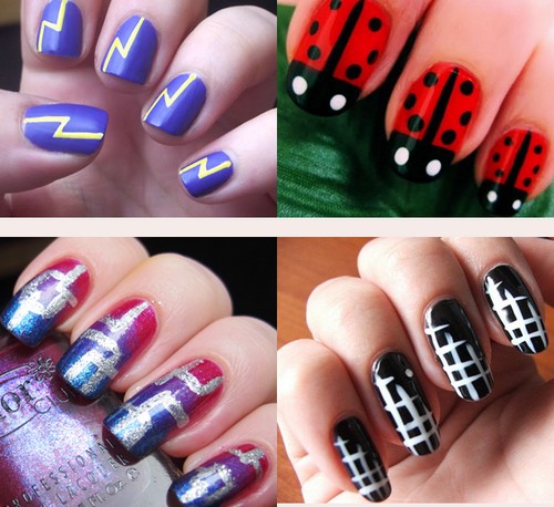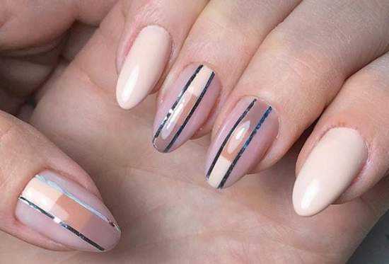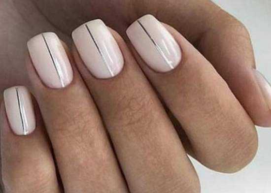 Если бы нам предложили составить рейтинг, в которые бы вошли самые легкие рисунки на ногтях, его бы однозначно возглавили полоски и линии. Проще всего сделать такой дизайн с помощью самоклеящихся полосок. Они бывают серебристыми, золотистыми или цветными. Чтобы сделать с их помощью полосатый маникюр, ленты достаточно наклеить на любой оттенок покрытия или на базу, а сверху покрыть ноготки топом.