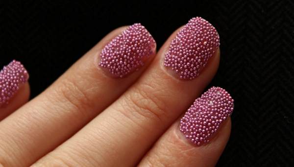 Выполняется такой маникюр с помощью специальных бусинок, которые стряхиваются на свежеокрашенные ногти и как бы «вдавливаются» в еще влажную поверхность.