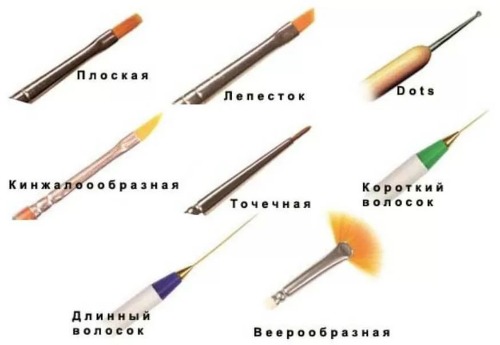 Чтобы выполнить «ювелирную работу» на ноготках, вам следует запастись определенным набором материалов, самым важным и сложным из которых являются кисти. Они позволяют воплотить на ногтевых пластинах самые уникальные композиции. При выборе кисточек отдавайте предпочтение натуральному ворсу из кролика или белки. Чтобы кисть долго вам служила, после работы помойте ее в теплой воде, тщательно просушите и уберите в чехол.