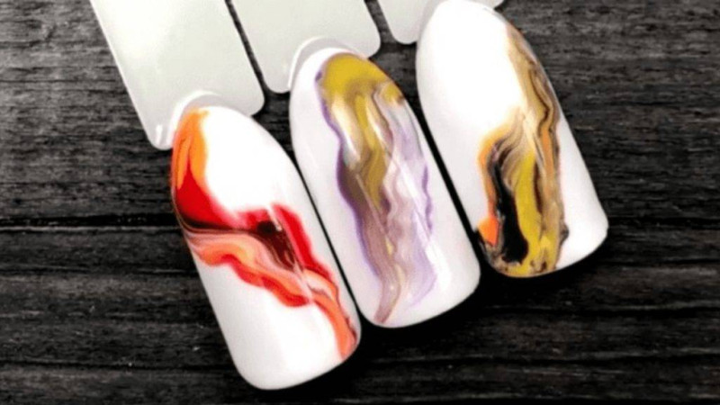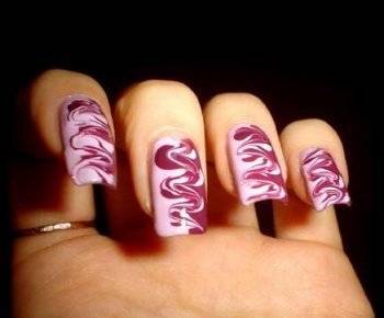 - Используя иголку, делайте узор, аккуратно смешивая лаки между собой или, наоборот, выводя четкие линии.