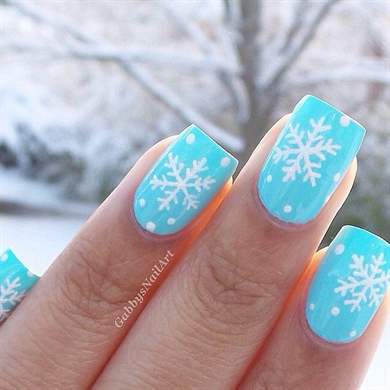 Выбор по этой теме очень большой: снежные кристаллы могут быть разных цветов и размеров, украшать один или все пальчики, быть блестящими и матовыми, замысловатыми или традиционными.