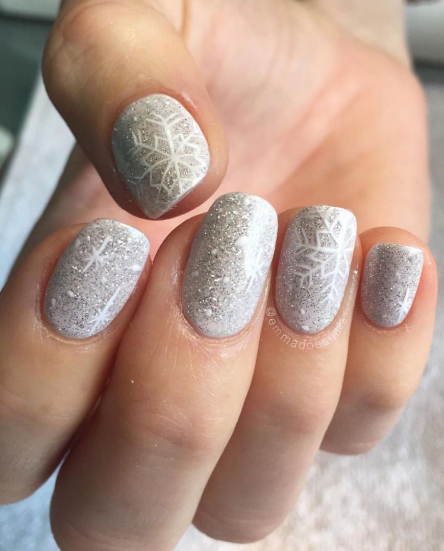 Короткий маникюр с дизайном снежинками: новые фото-идеи 2021-2022