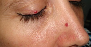 - сразу станет заметно воспаление родимого пятна на лице, ведь этот процесс сопровождается покраснением и опухлостью;