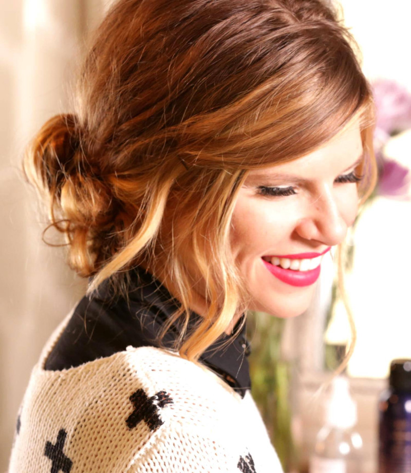 Alex Gaboury’s low bun is a deceptively easy Valentine’s Day hairdo that adds the perfect romantic touch to your look.