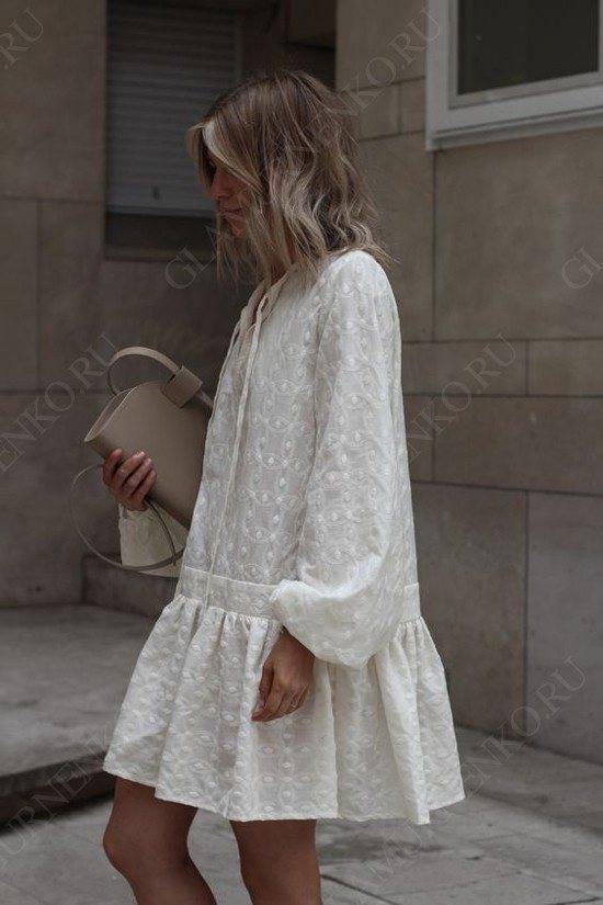 Нежное платье свободного кроя с однотонным узором – романтика воплоти