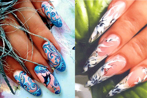 Рисунки акрилом проще делать на длинных ногтях