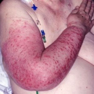 Для заболевания характерна более длительная (до 2-х недель) лихорадка и медленное обратное развитие. Среди осложнений иногда отмечается некроз кожи.