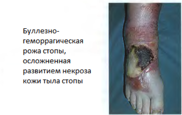 Признаки и симптомы рожи при буллезно -геморрагической форме заболевания