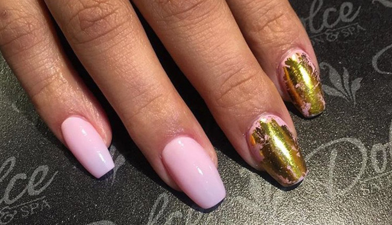 Если у вас недостаточно времени для похода в салон, окрасьте часть ногтей мятой, а остальную часть розовым, такое слияние смотрится очень стильно