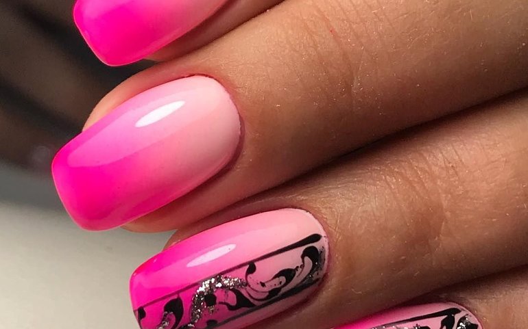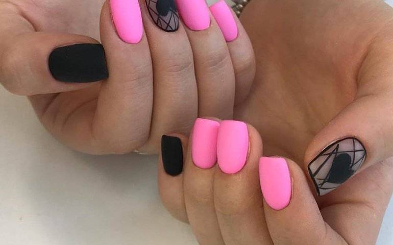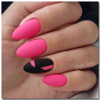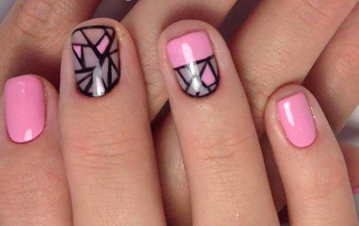 Часто мастера ногтевого сервиса стали комбинировать черно-розовый маникюр. Смотрится довольно стильно. Сразу бросается в глаза. Если хотите удивить, сделать акцент на ваших ручках – смело выбирайте такой вариант.