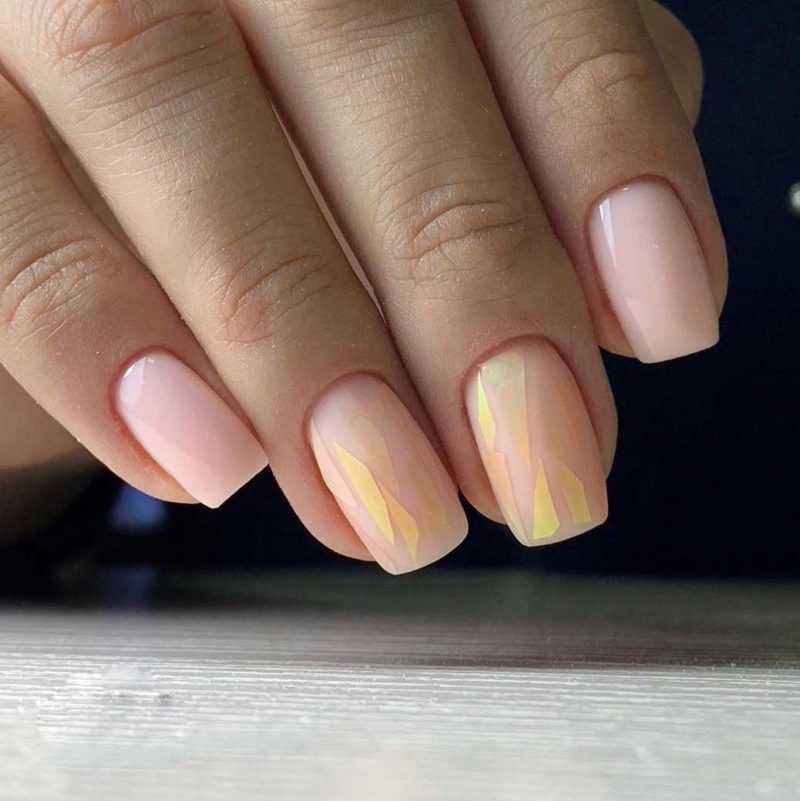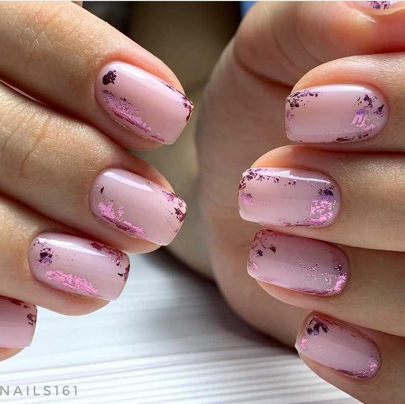 Когда мы говорим о нежных ногтях, имеем в виду полупрозрачные базы или молочные оттенки. Одно из больших преимуществ розового маникюра на короткие ногти является то, что он идеально вписывается в рамки учебного или рабочего дресс-кода. Помимо этого, нюд позволяет создать эффект “своих ногтей, только лучше” — максимальная естественность и ухоженность одновременно.
