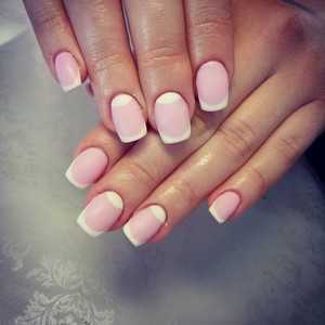 Французский маникюр, выполненный в розовых оттенках — остается незаменимой классикой жанра. Такой вариант можно комбинировать с различными рисунками: выполнить маникюр с цветами, ажурной росписью, бабочками, линиями – добавляя в него изюминку.