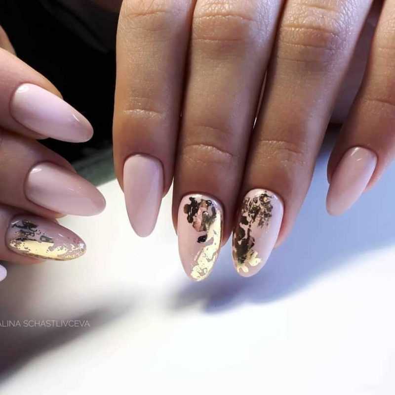 Идеальная миндалевидная форма, сочетаемая, как тёплыми, так и холодными тонами. На миндаль подходит французский маникюр, полностью закрашенная поверхность, градиенты, цветы, бабочки. Красиво смотрятся золотистые и серебристые ленты, фольга.