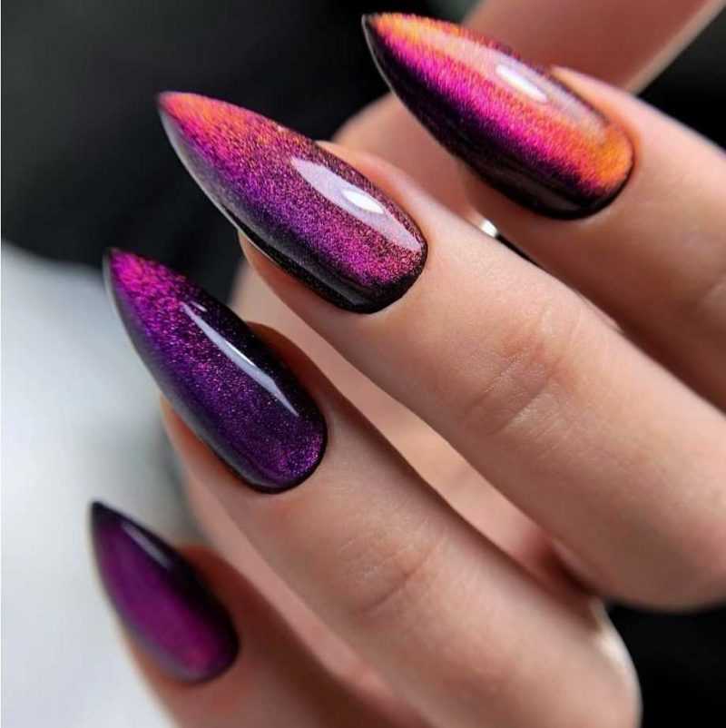 Магнитные гель-лаки розового цвета — выбор не для робких особ. Они достаточно яркие, и на длинных ногтях полностью раскрывают весь задуманный волшебный эффект.