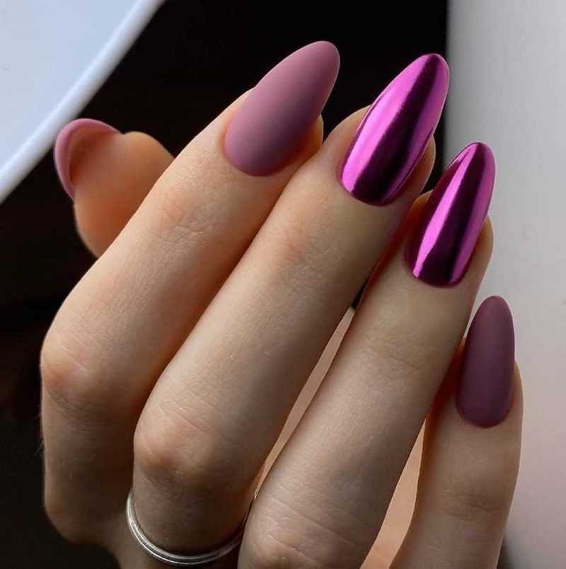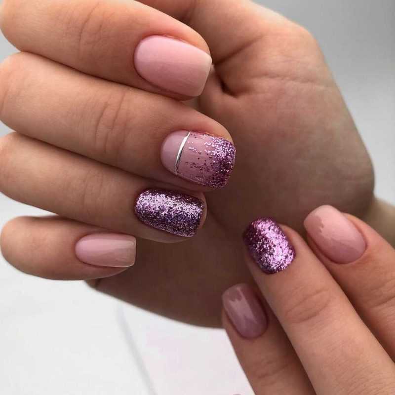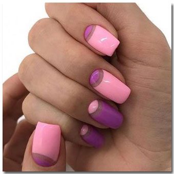 В процессе оформления ноготков можно использовать несколько оттенков. Благодаря чему маникюр получается более оригинальным и интересным. Отлично смотрится розово-фиолетовое покрытие. Такой маникюр отражает нежность и романтичность образа в любое время года
