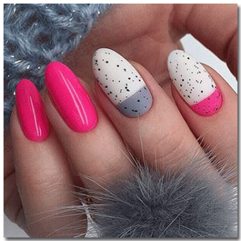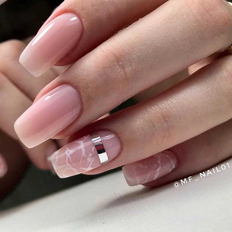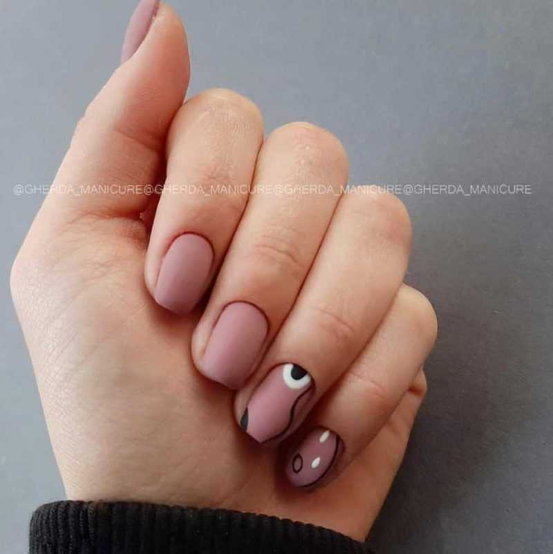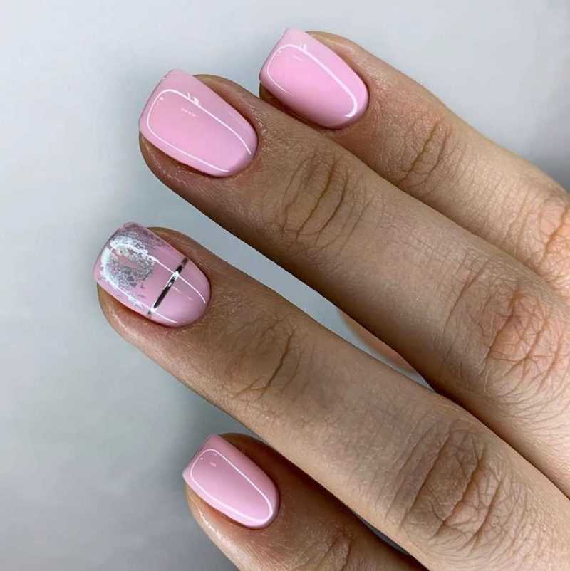Розовый очень удачно гармонирует с оттенками серого: можно взять этот цвет за основу акцентных ноготков или сделать отдельные штрихи.