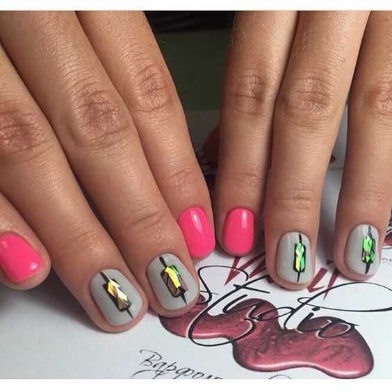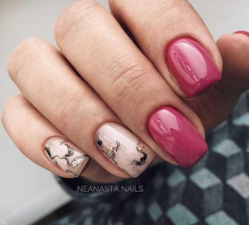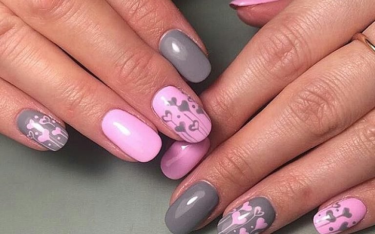 Но очень важно, чтобы оттенки были одной насыщенности. Не менее прекрасное решение — розово-серый маникюр. Это сочетание более спокойное и смотрится благородно, изящно