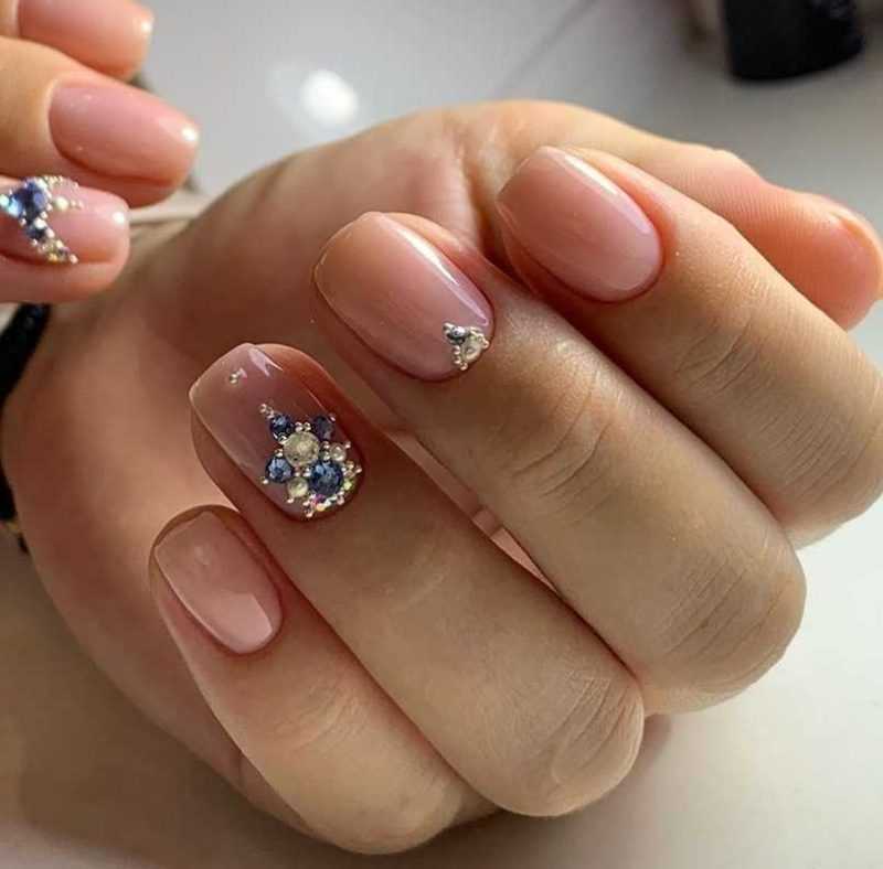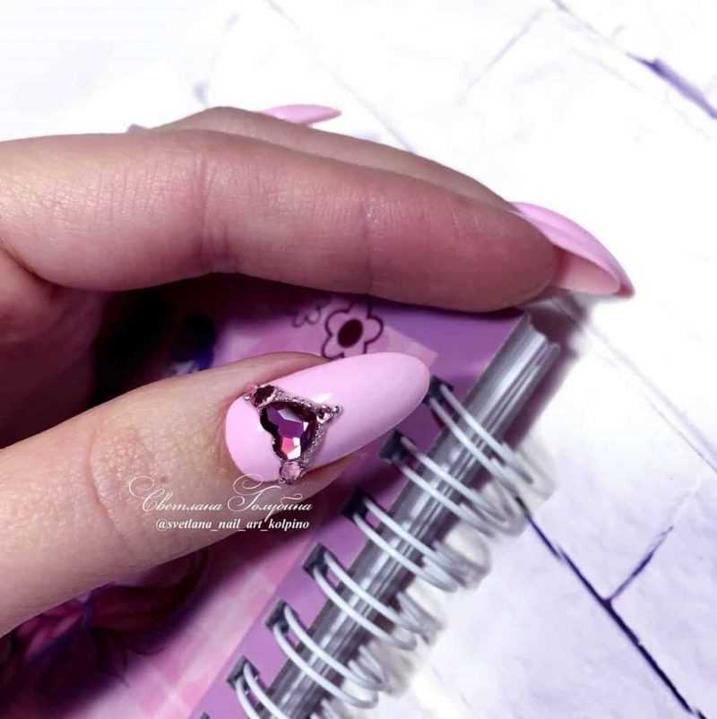 Стразы на розовом подчеркивают игривость и стиль. Пробуйте разные расположения и дополнения для того, чтобы маникюр гармонировал с вашим образом.