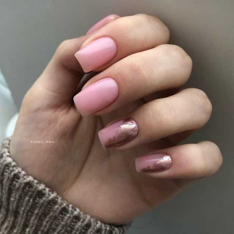 Нежно-розовый маникюр на квадратных ногтях 2022 фото