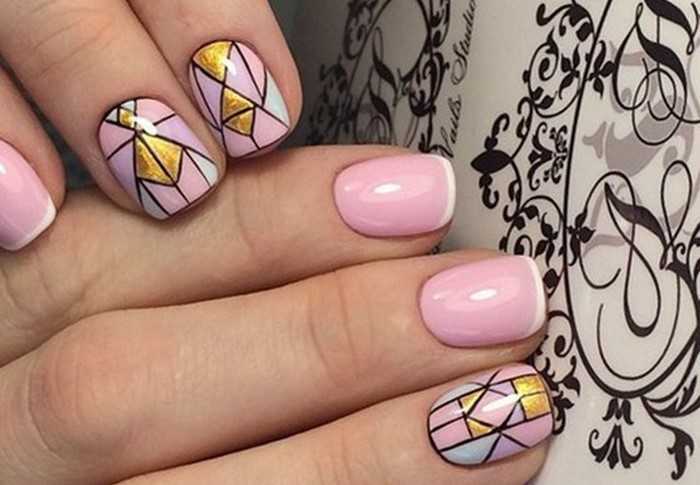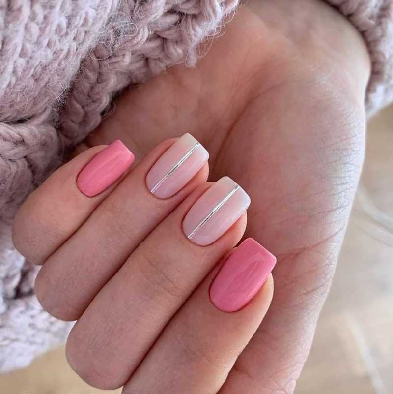 Ещё несколько замечательных идей розового маникюра с геометрией:
