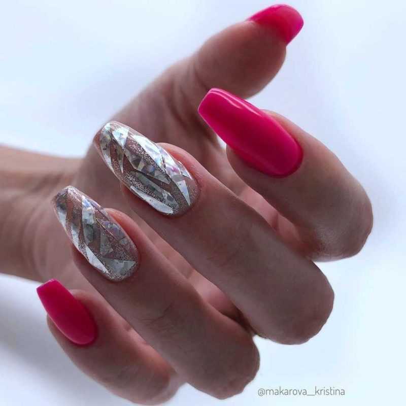 Любительницам яркого маникюра определенно стоит попробовать сочетание розового цвета лака с серебром или золотом. Эти оттенки максимально яркие и никогда не остаются без внимания. Поэтому их в основном выбирают для мероприятий, праздников и вечеринок.