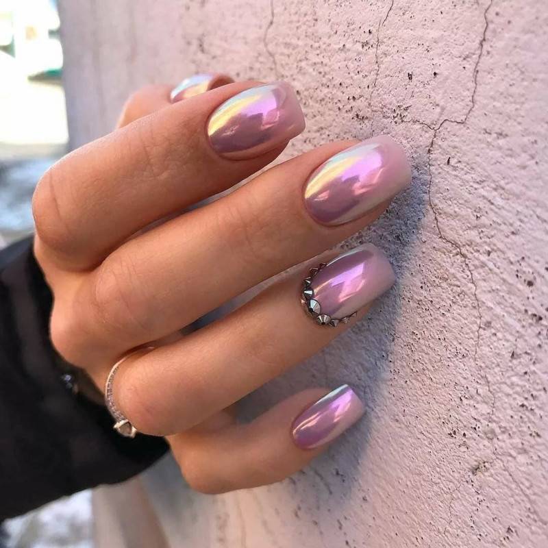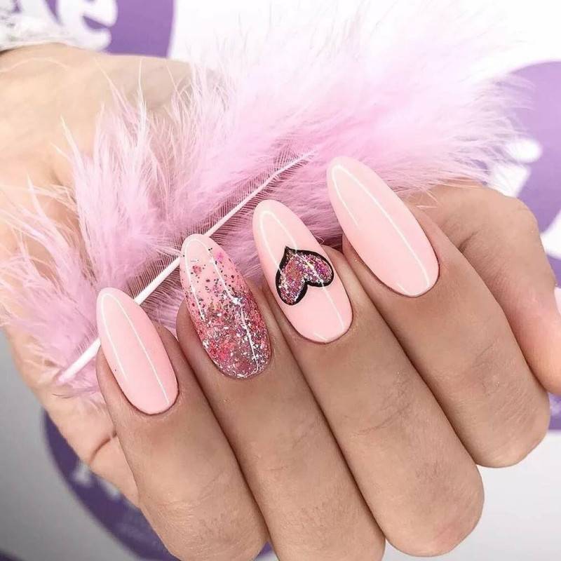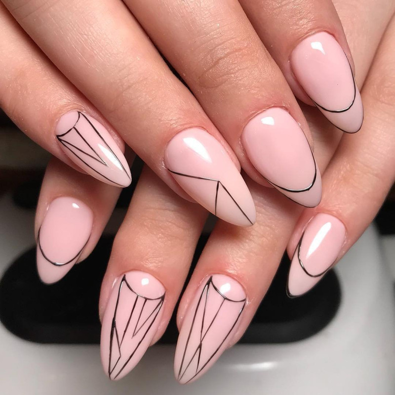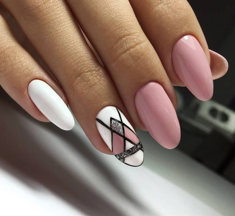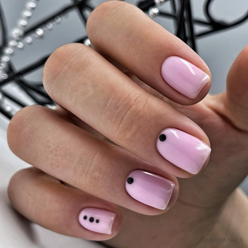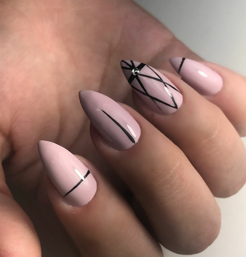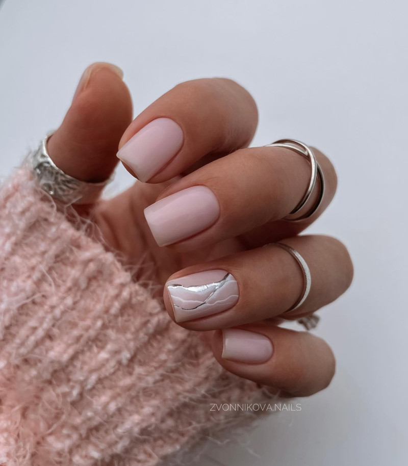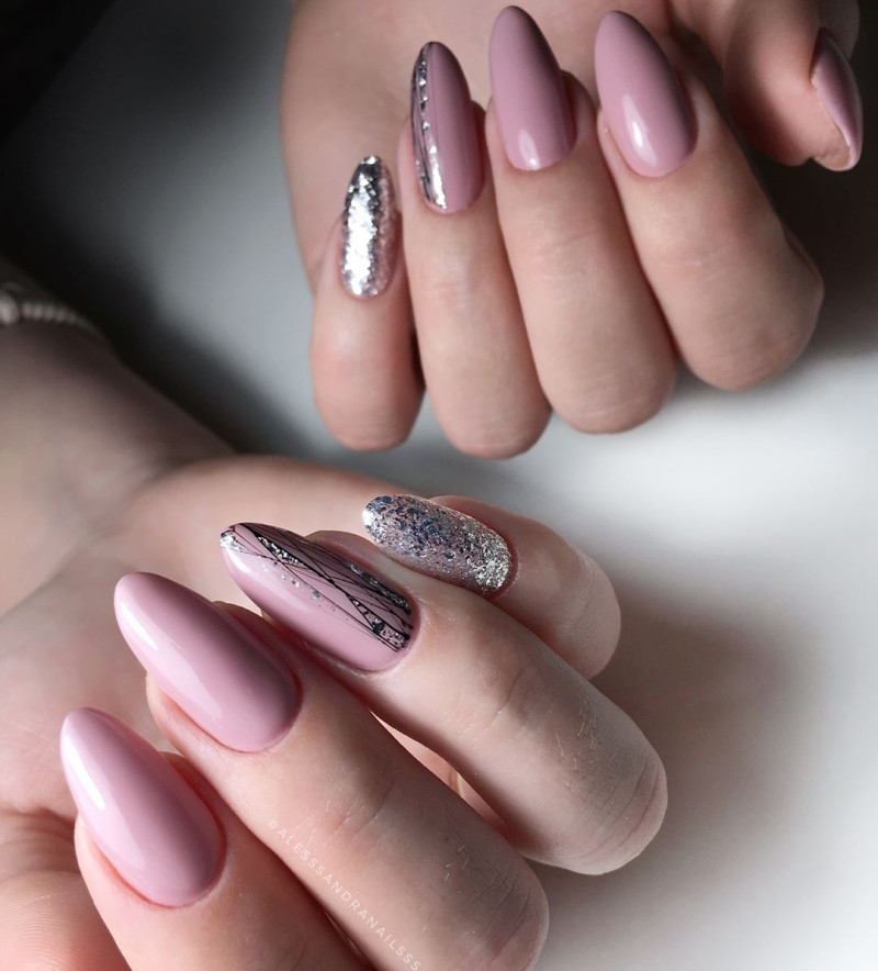 Розовый очень удачно гармонирует с оттенками серого: можно взять этот цвет за основу акцентных ноготков или сделать отдельные штрихи.