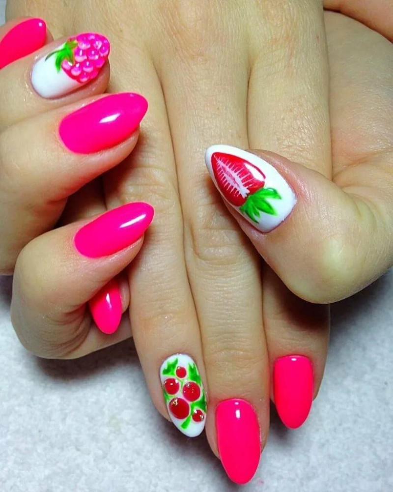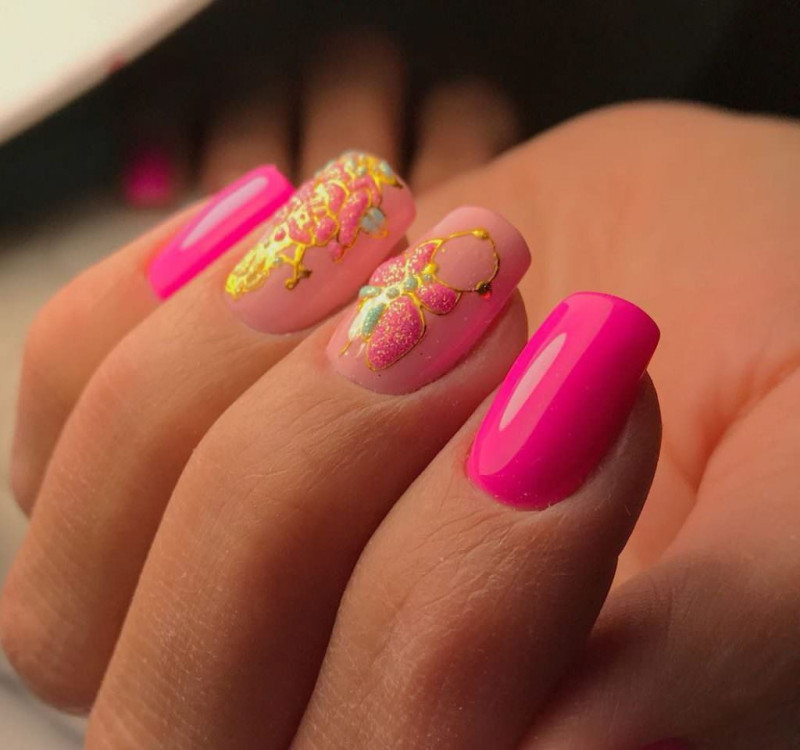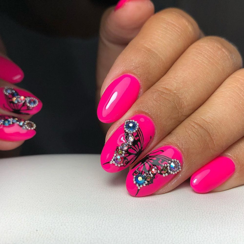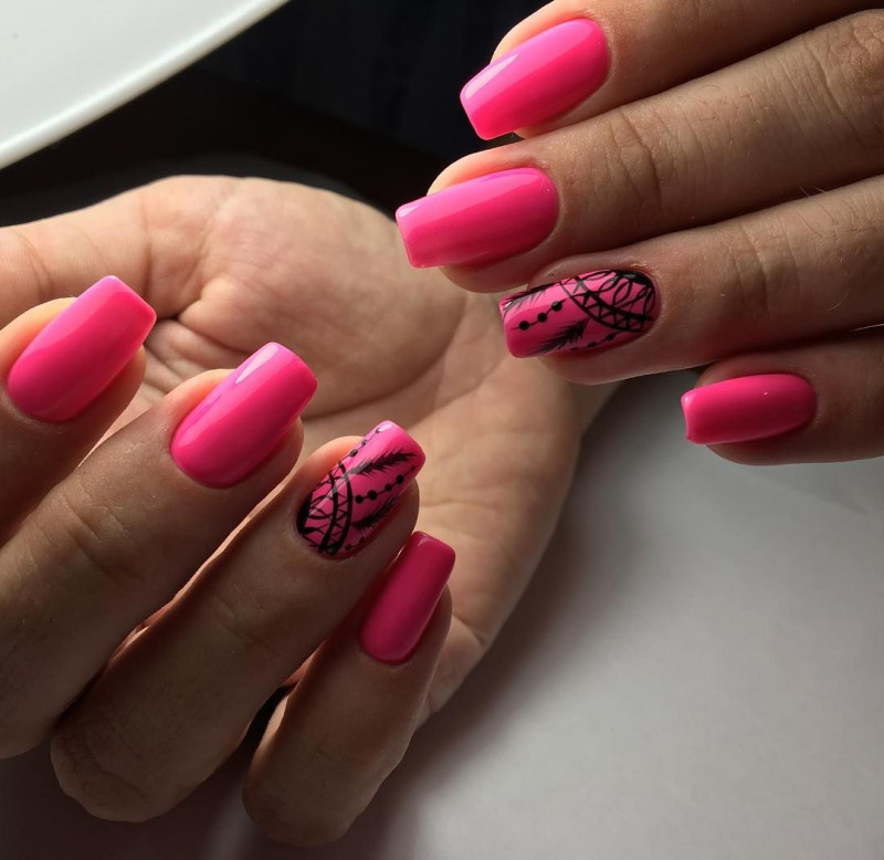 Ярко-розовый маникюр создаст тот самый оригинальный акцент в образе, который не превратит тебя в городскую сумасшедшую (что рискует случиться, если слегка переборщить с креативностью в случае с одеждой или аксессуарами). С ним ты всегда будешь заметна, но ощутишь себя комфортно как на мероприятиях, так и в повседневной жизни. Ниже мы подобрали для тебя десятки идей ярко-розового маникюра гель-лаком с рисунками.