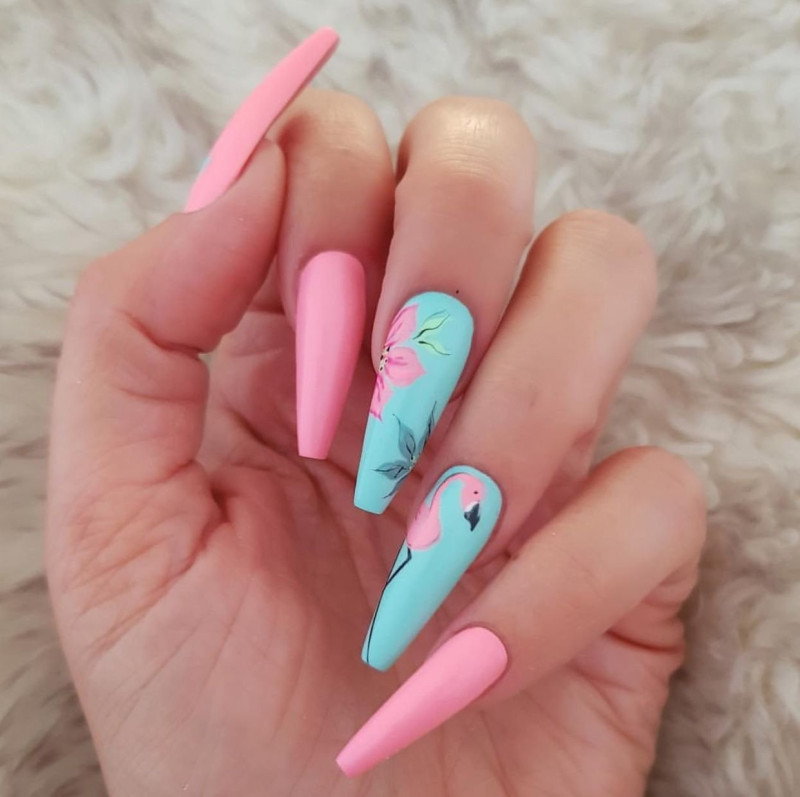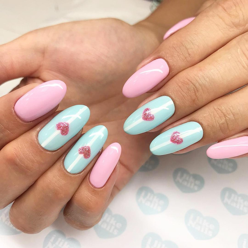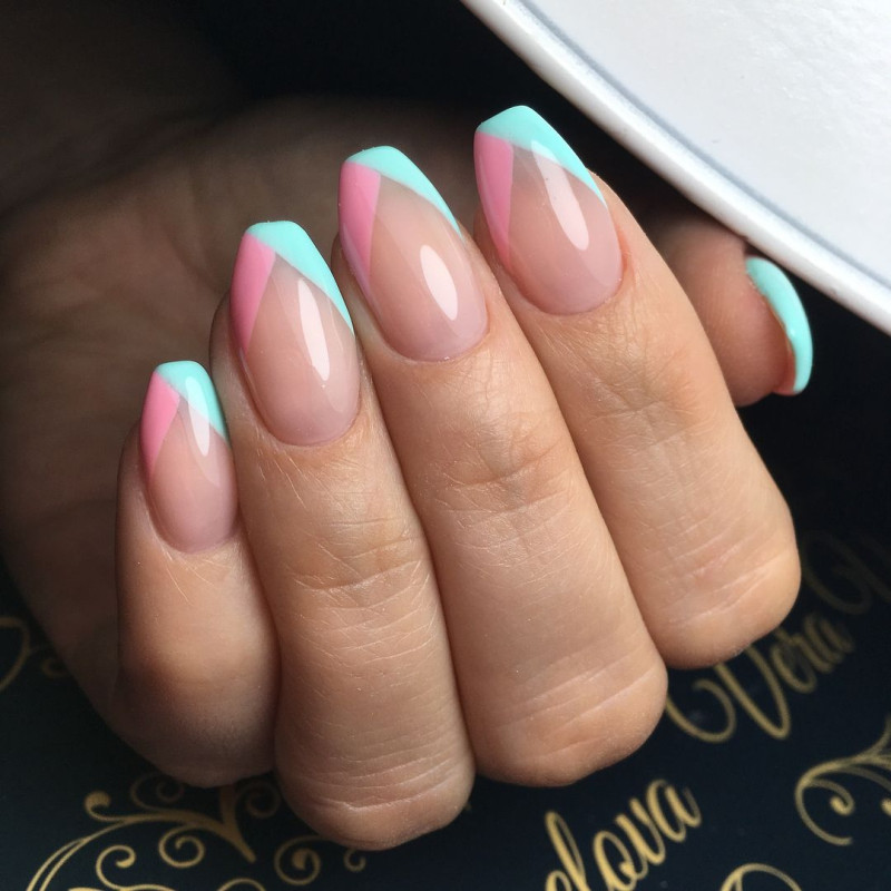 Розово-голубой маникюр также относится к классике. Это цветовое сочетание встретить можно на каждом шагу.
