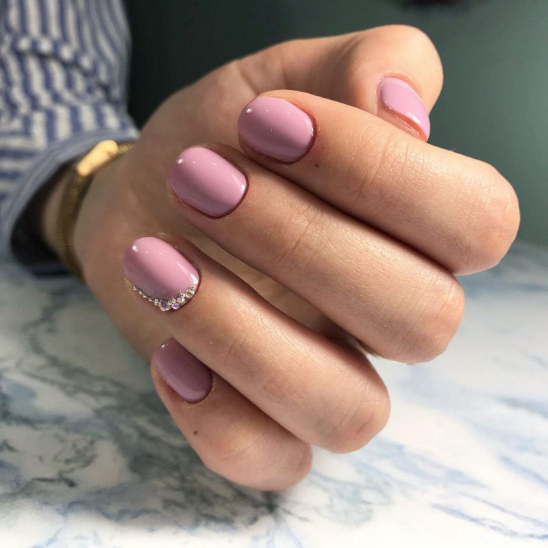 Именно этот оттенок чаще всего используют в дизайне под названием “френч”. Натуральный розовый как никто другой выгодно подчеркнет красоту ногтей и изящность рук, деликатно скрыв мелкие недостатки вроде надломленного края. Именно с этим оттенком получается тот самый холодный розовый маникюр, который лучше всего смотрится на девушках с белой кожей и темными волосами.