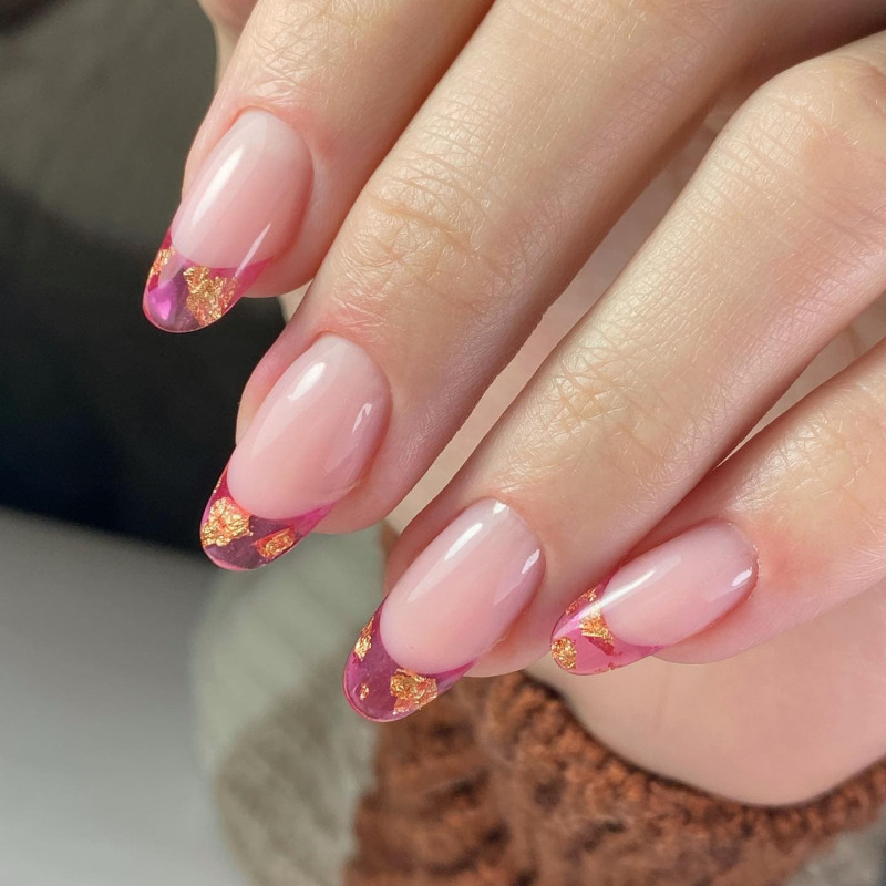 Золото в тренде. В сезоне осень-зима 2022-2023 в моде блеск. Тонкая полоска золотого лака на кончике смотрится очень интересно.