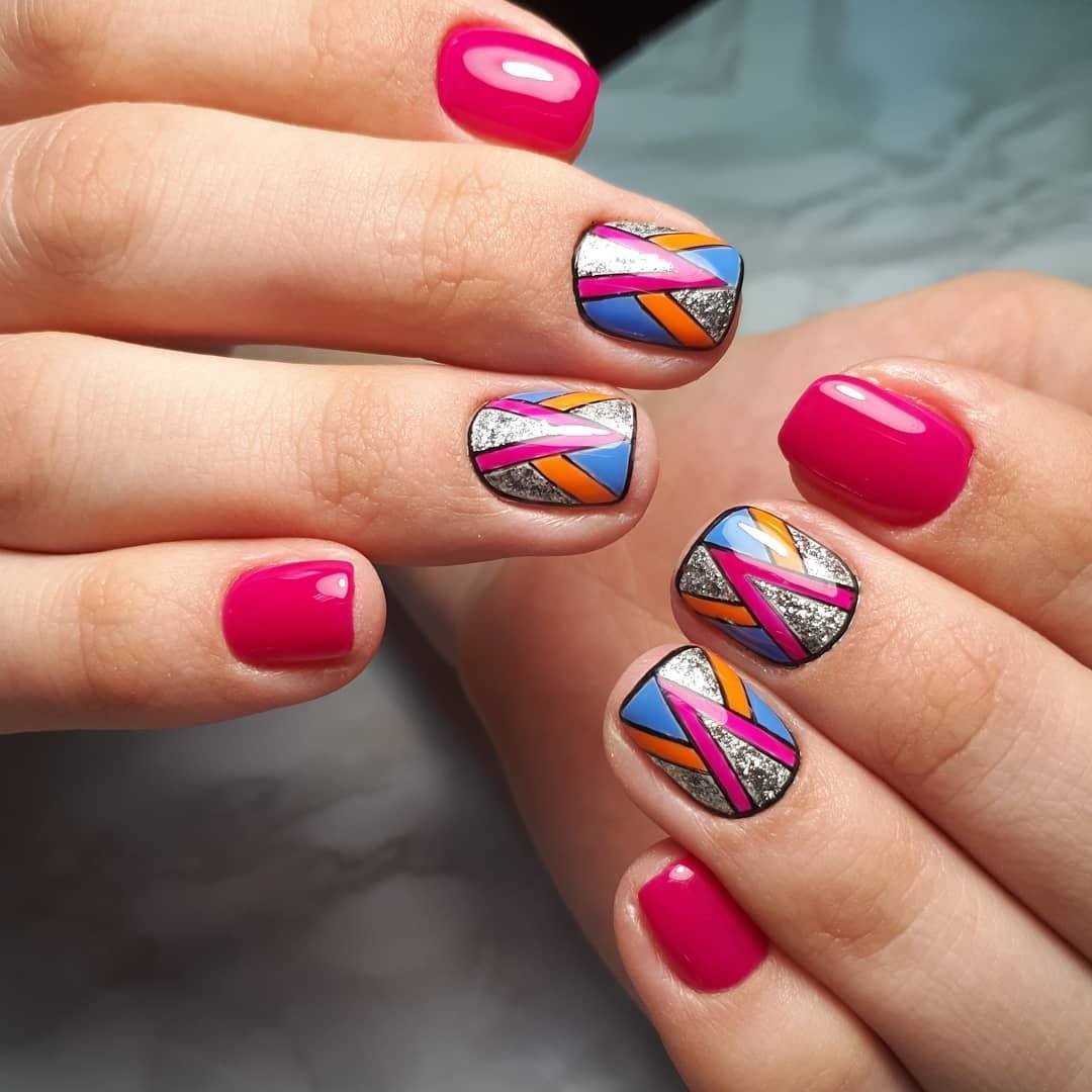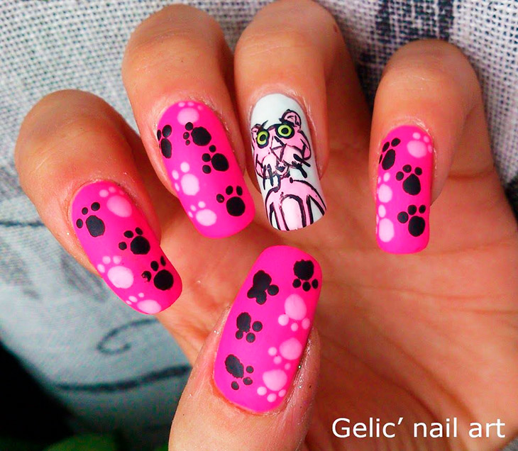 Чтобы сделать более яркий, насыщенный нейл-арта, стоит выбирать соответствующие оттенки лака. Это может быть классический розовый цвет или фуксия. Их комбинируют преимущественно с черным, фиолетовым и синим цветом. Хорошей альтернативой будет желтый, серый, голубой и другие оттенки. Также стоит отметить, что он отлично смотрится с золотистым или серебристым покрытием. Такое сочетание получается более ярким, праздничным.