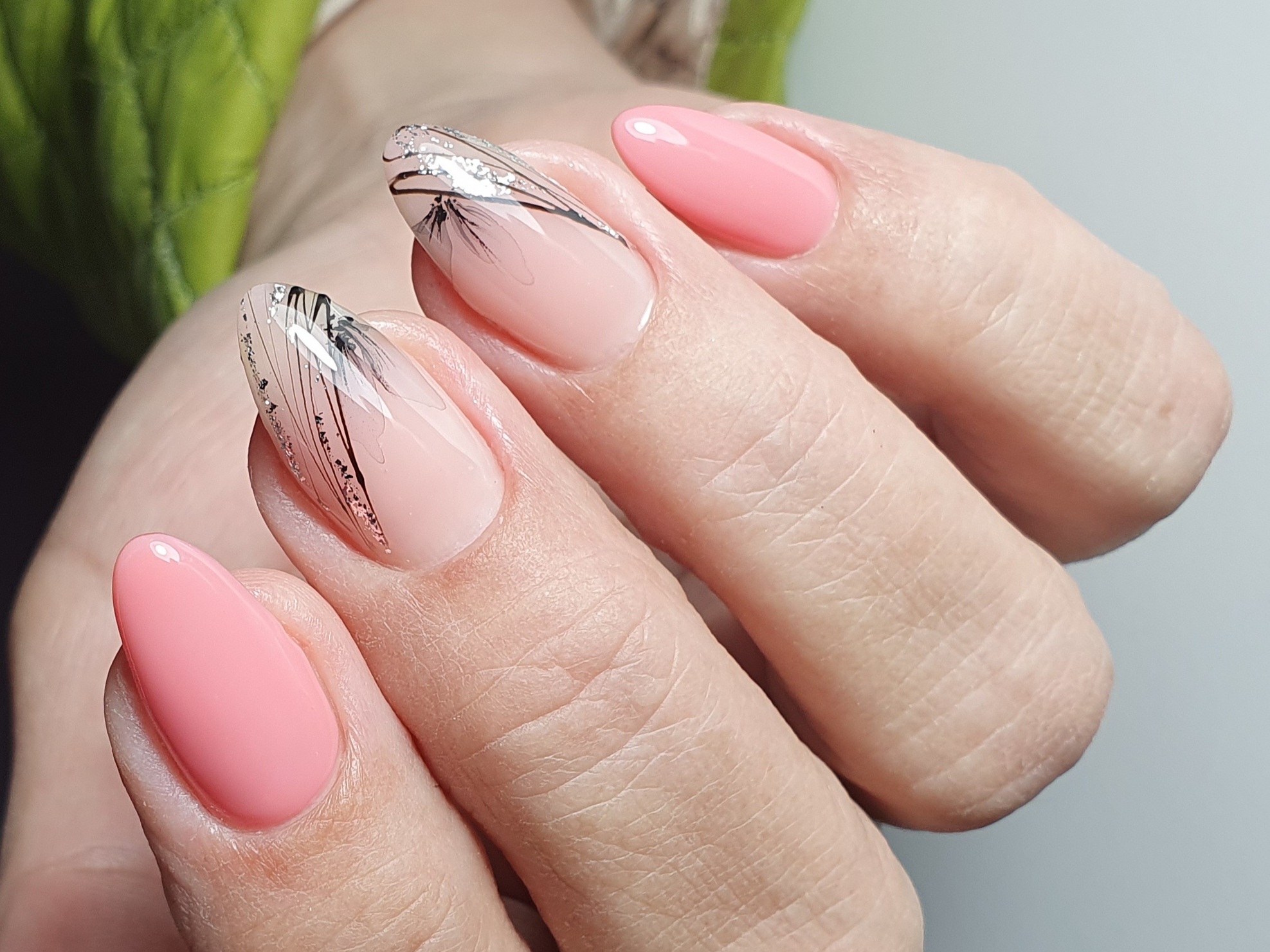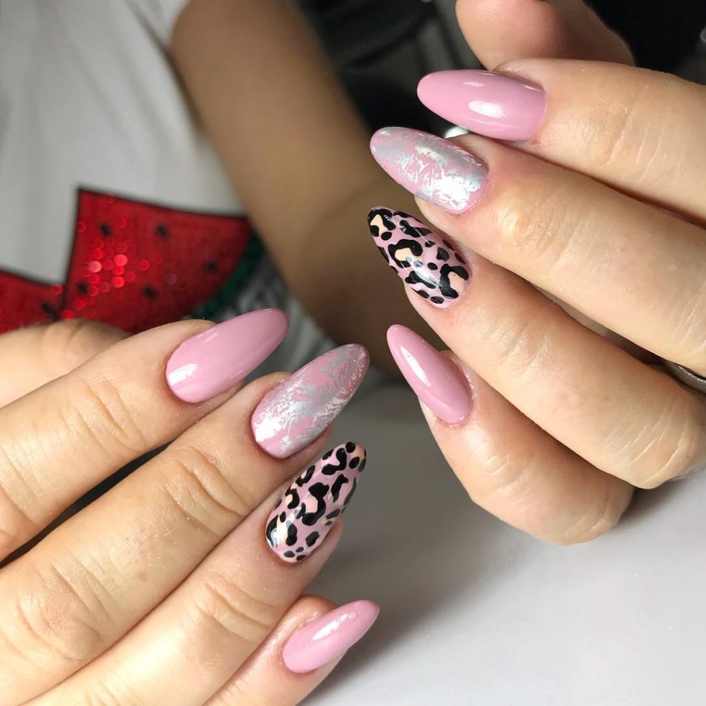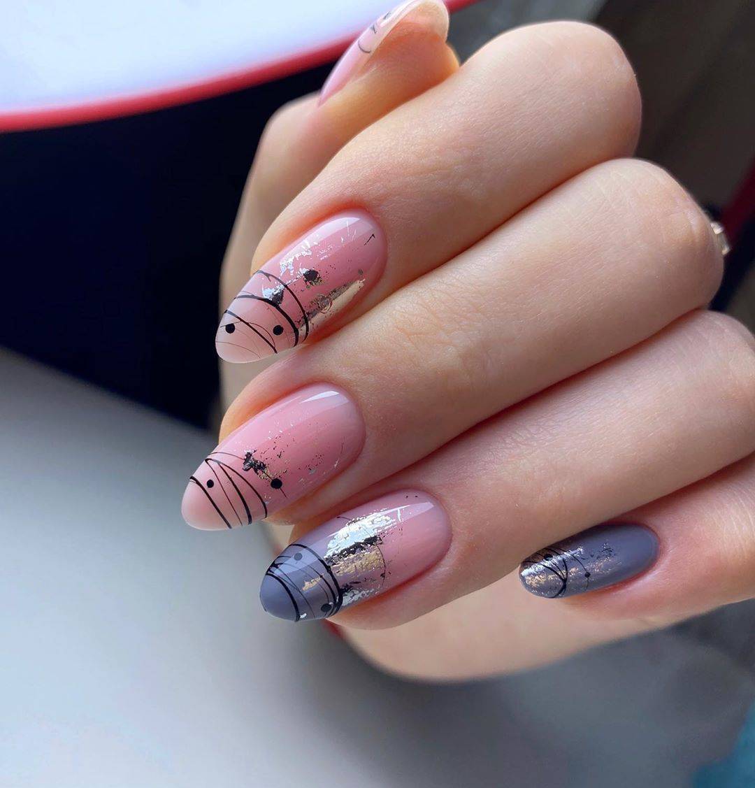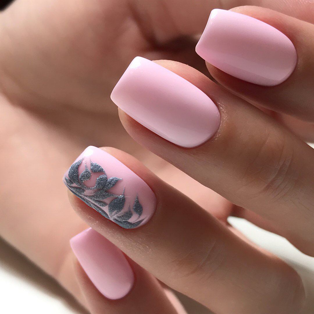 Розовый очень удачно гармонирует с оттенками серого: можно взять этот цвет за основу акцентных ноготков или сделать отдельные штрихи.