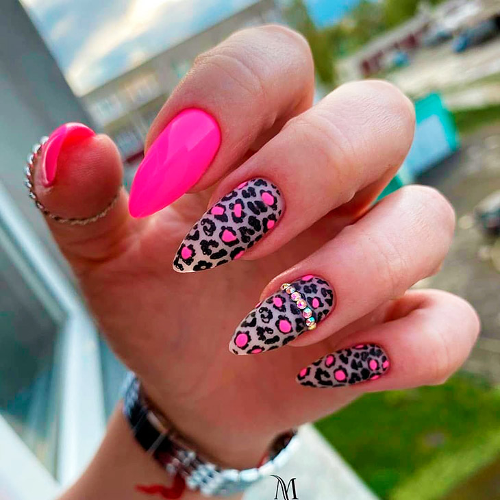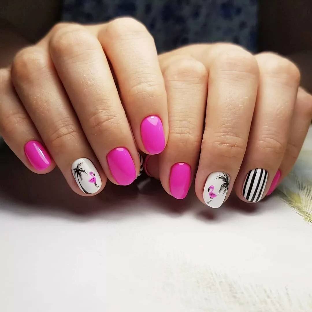 Ярко-розовый маникюр создаст тот самый оригинальный акцент в образе, который не превратит тебя в городскую сумасшедшую (что рискует случиться, если слегка переборщить с креативностью в случае с одеждой или аксессуарами). С ним ты всегда будешь заметна, но ощутишь себя комфортно как на мероприятиях, так и в повседневной жизни. Ниже мы подобрали для тебя десятки идей ярко-розового маникюра гель-лаком с рисунками.