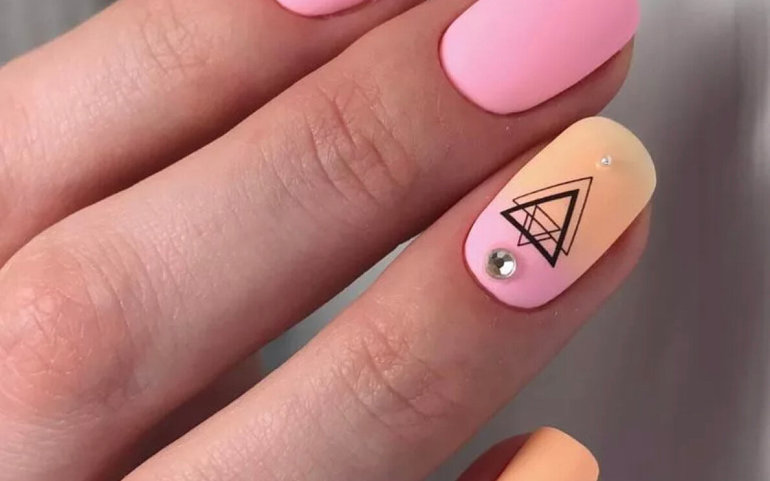 Розовый маникюр с оригами выберут леди, которые устали от классического повседневного нейл-арта. Эту новинку сезона 2022 профессионалы относят к геометрическим узорам.