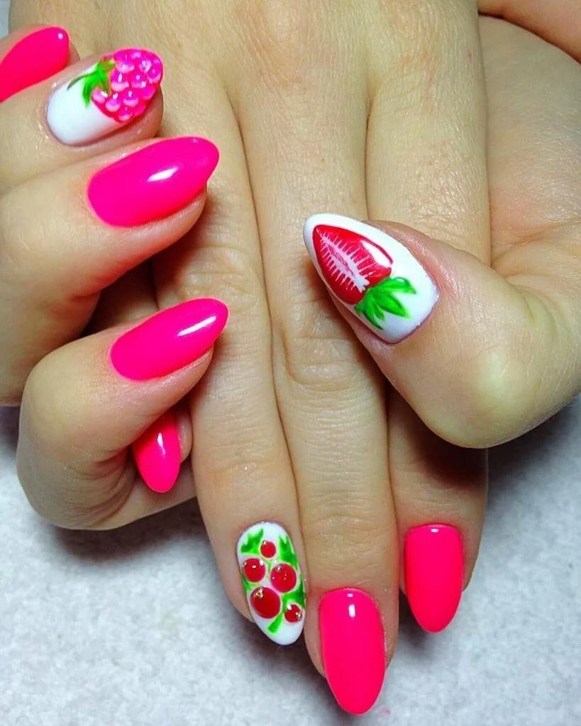 Напоследок, ярко-розовые тона — светящийся неон или ядреная фуксия — лучшее решение, когда стоит задача привлечь к себе внимание и выглядеть стильно, а не пестро. Помимо того, что эти оттенки идут практически всем женщинам, они еще и очень модно смотрятся на ногтях