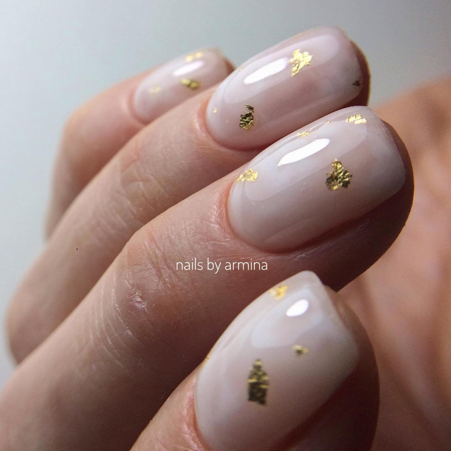 Еще одна разновидность омбрэ-растяжки, смягчающая эпатажность образа и придающая ему шарм, легкость и изящество. Такой дизайн можно воплотить при помощи аэрографа или более бюджетной и простой техники «Aeropuffing». Женственные и элегантные бэби-балерины украшаются стразами Swaroski, жемчугом или бульонками.