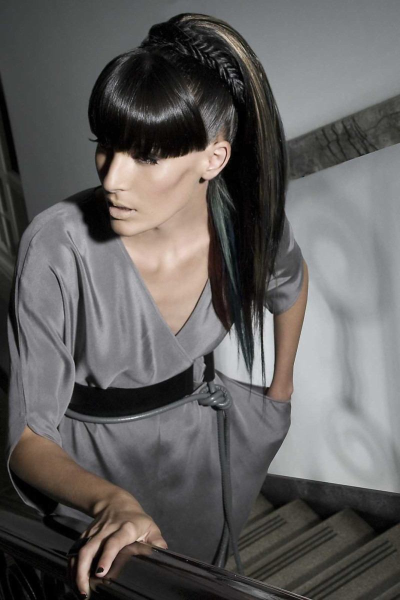 Длинная прямая челка – для загадочных и экстравагантных дам. Но в любой момент такую челочку удобно трансформировать в новый элемент прически, и тем самым разительно изменить имидж.