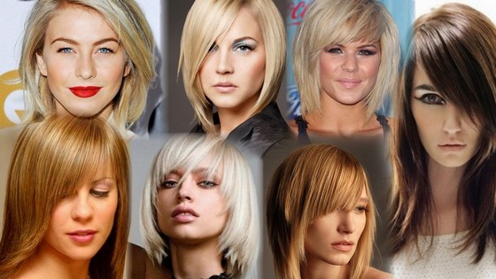 Прически на длинных волосах и элегантной косой челкой служат в качестве акцентирующего элемента в образе женщины. Косая челка значительно подчеркивает черты лица и делает глазки выразительней. Косая челка может быть различной длины, в зависимости от желания девушки. При выборе причесок для длинных волос с косой челкой необходимо учитывать форму личика и тип волос. Можно выполнять совершенно любые укладки. Универсальность такой челки заключается в том, что ее можно задействовать при выполнении прически. Очень часто при выполнении укладки косую челку делят на две части, что придает образу женственности и шарма. Такую челку можно подкрутить, тем самым добавить нотки нежности и легкости в общий образ.