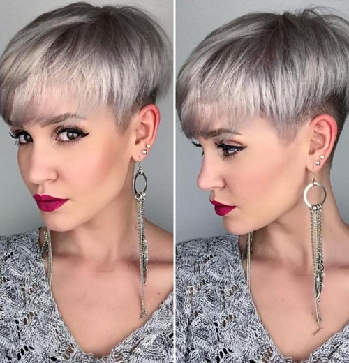 Редкая косая челка идеальный вариант для стрижки пикси. Она поможет создать дополнительный объем. За счет этого прическа будет выглядеть естественно, игриво и воздушно.