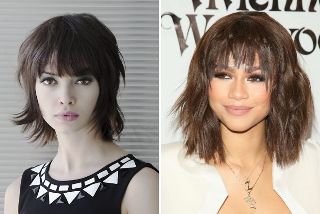 Стрижка аврора изначально исполняется с редкой челкой и невообразима без нее. Средней длине волос прекрасно подойдут рваные пряди по бокам. Образ получится дерзким и смелым, а легкость укладки этого варианта – огромный плюс.