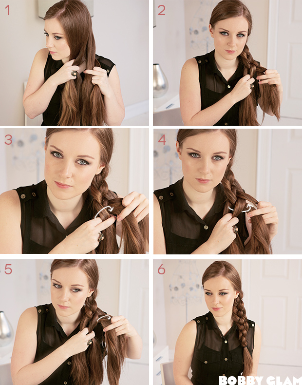 Пряди, которые остаются ниспадающими во время плетения, желательно чем-то временно закрепить в стороне, чтобы они не мешали и не путались.