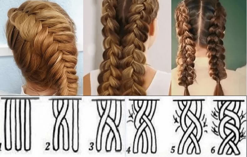 - 4 прядь под 3 и на 2. Схема: 2 раза пряди под низ, 2 раза наверх.