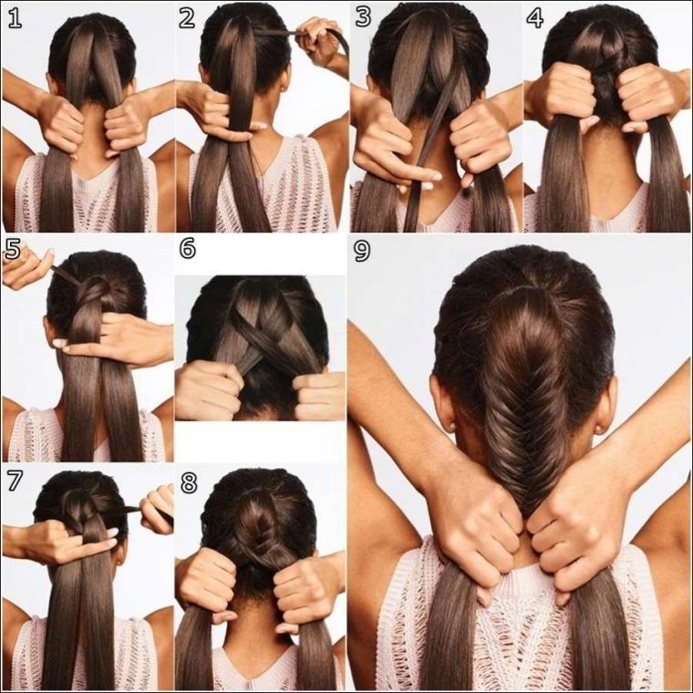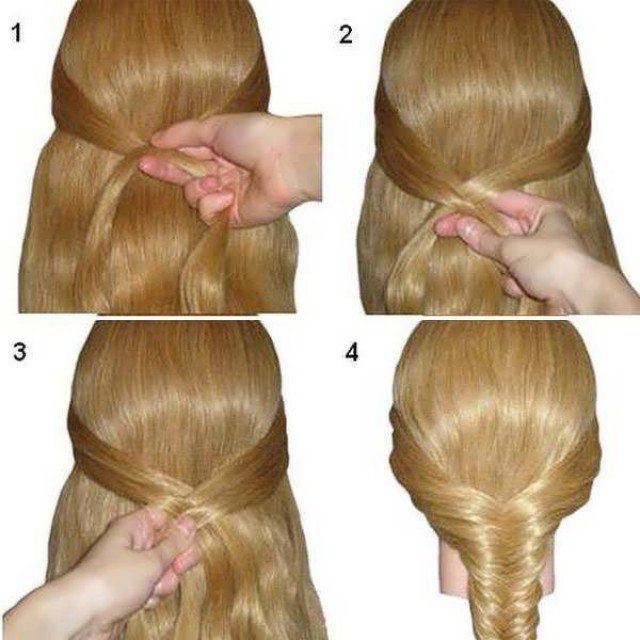 - Рыбий хвост. Плетется путем перекладывания прядей из одной части в другую. В результате получается эффект скелета рыбы.