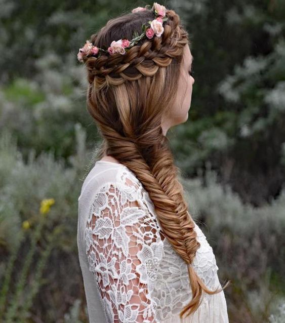 Ободок или венчик из косы сегодня чудесно дополняется распущенными волосами, запреты на это уже давно не актуальны. Очень стильно смотрятся такие причёски в объединённом виде, когда один способ укладки волос переходит в другой. Например – красиво заплетённый венчик переходит в не менее красиво заплетённую косу или пучок на макушке.