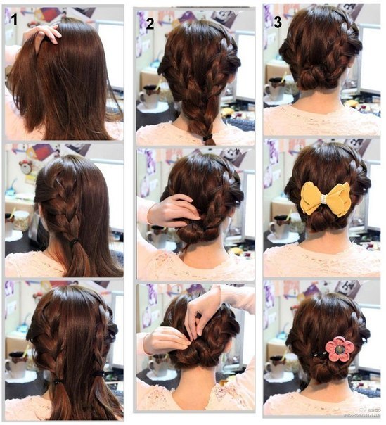 Вы можете заплести один из вышеперечисленных вариантов, а можете просто собрать аккуратную косу из трех прядей и украсить ее лентой. Такая укладка очень практична, она обеспечит порядок на вашей голове на протяжении всего дня, а сделать ее самой себе сможет любая красавица.