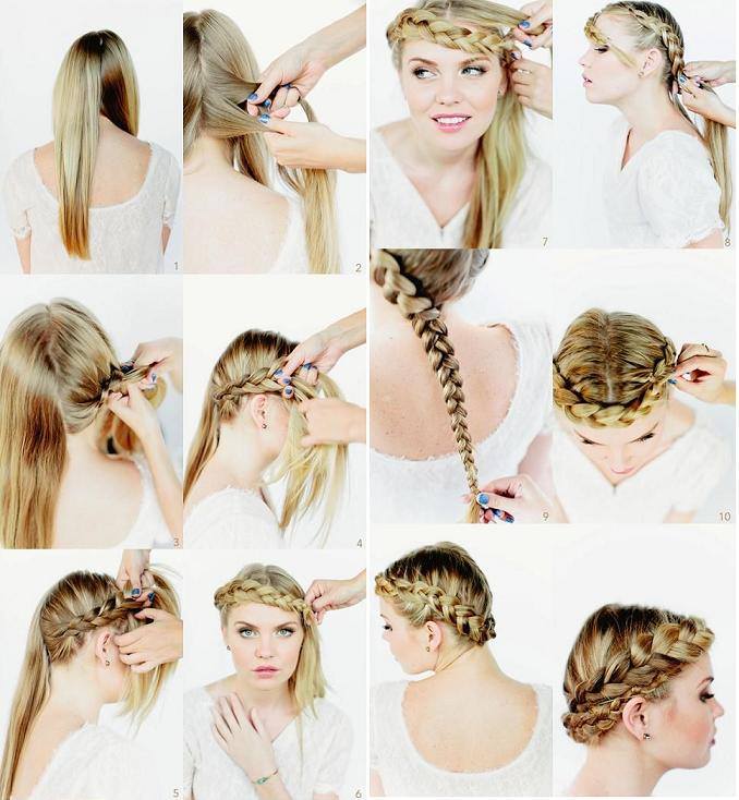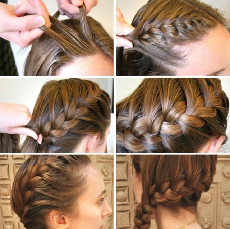 - Греческий ободок. Круговое плетение во французской технике, в результате которого получается «ободок» из волос.