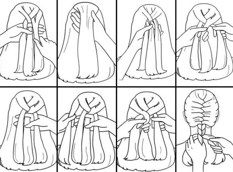 Вот так следую данной схеме можно быстро заплести ребенку косички.