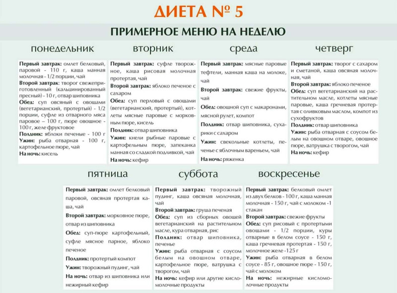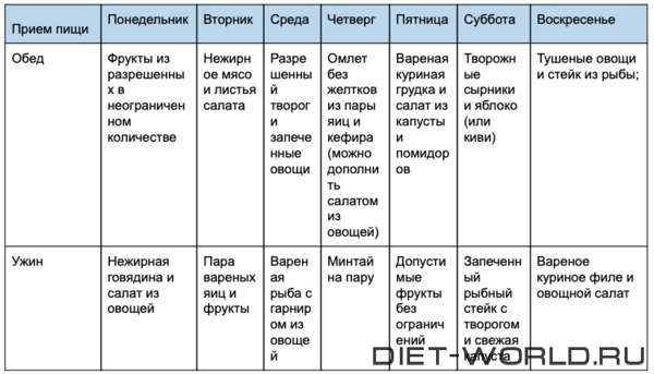 Итак, мы предлагаем вам ознакомиться с примерным меню на каждый день для щадящей диеты: