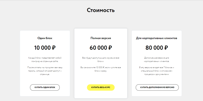 - для продажи курса нужна посадочная страница;