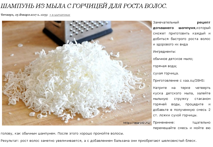 химических составляющих было как можно ниже. Хороший вариант- мыло, разработанное для использования детьми. - Для изготовления основы шампуня, одну четвертую часть бруска мыла измельчают на мелкой терке и заливают одним стаканом горячей воды.